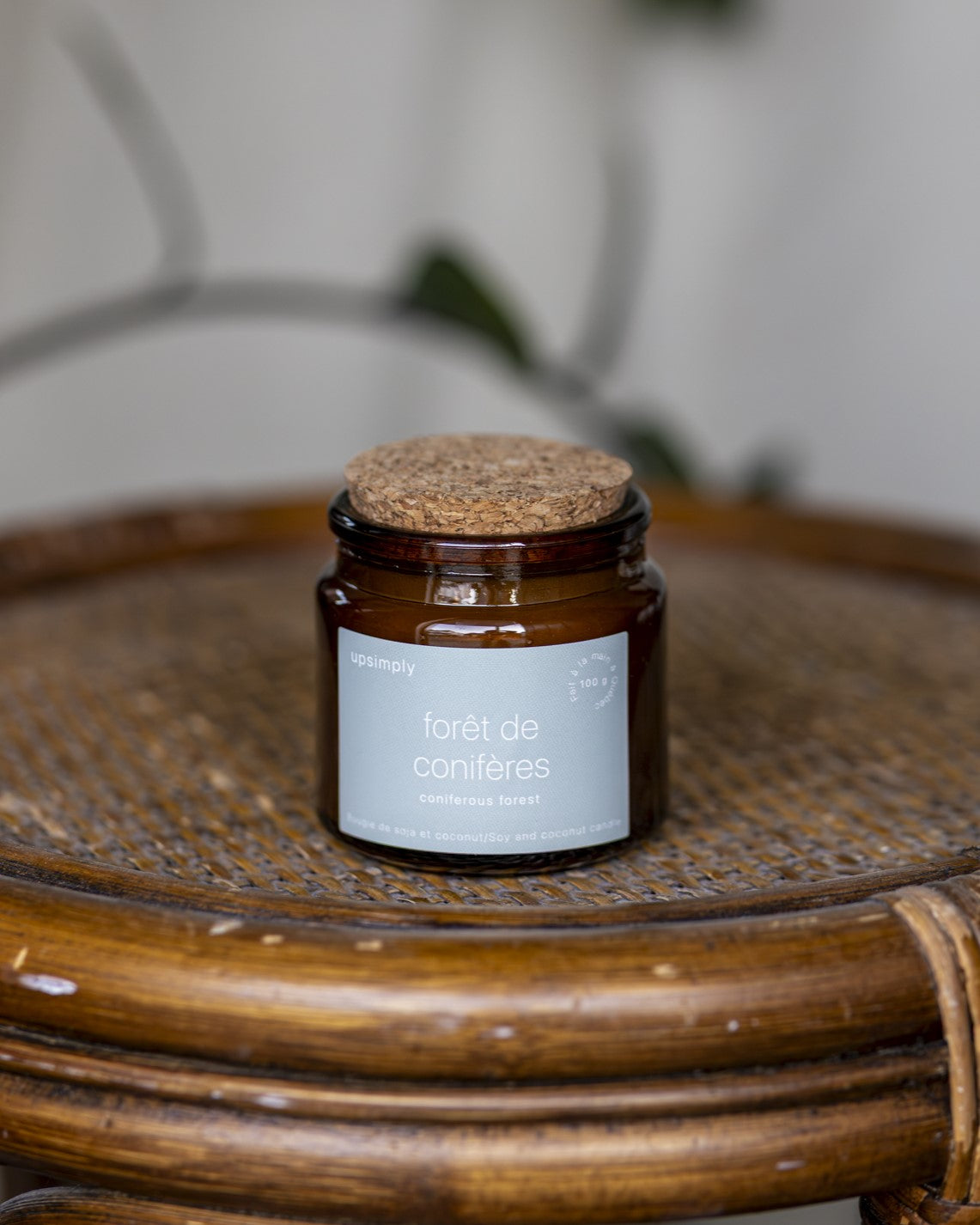Mélange de sapin, cèdre et une touche d’eucalyptus. Nos bougies artisanales sont douces et naturelles. Elles sont conçues et coulées, une à une, à la main ici au Québec.